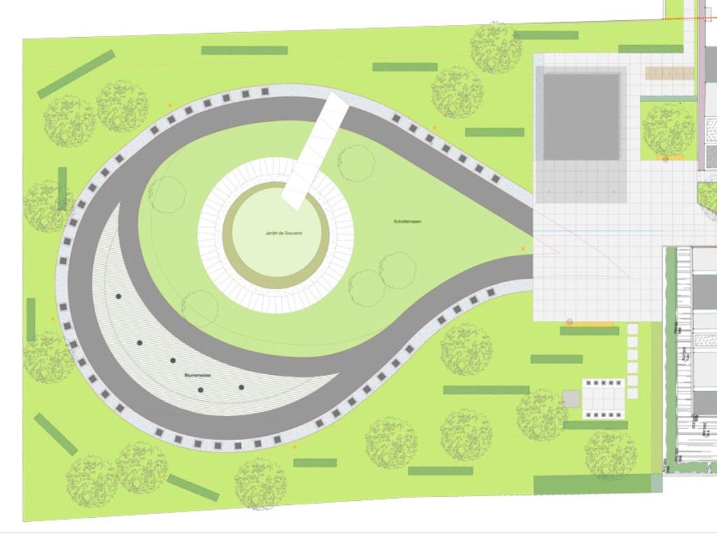 L’objectif fut de changer le caractère triste de ce cimetière traditionnel et de contraster avec le cimetière actuel existant. Le tracé de ce nouveau lieu de recueillement aborde des courbes plus douces, des zones de prairies et des plantations clairsemées sur tout le site. De cette manière le projet invite le visiteur à la balade et laisse le souvenir d’un moment différent au cimetière.