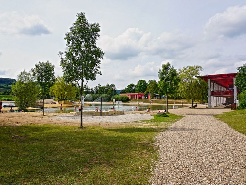 Sur la partie Nord du lac, près du restaurant, le bassin pour enfant ainsi que les plages en pelouse seront agrandis. Une digue est recréée plus en arrière afin d’agrandir ces surfaces.