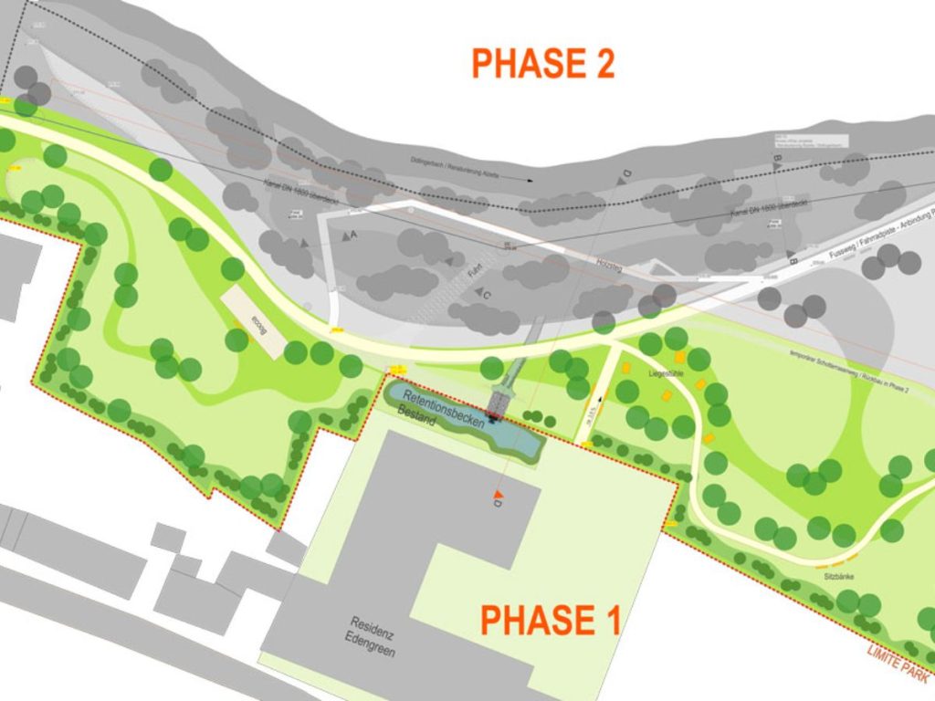 La deuxième phase sera réalisée en 2022, après la fin du chantier CFL avec l’installation d’un pilotis et la renaturation de l’Alzette sur près de 2000m2 par la remise en eau d’un ancien bras de la rivière.