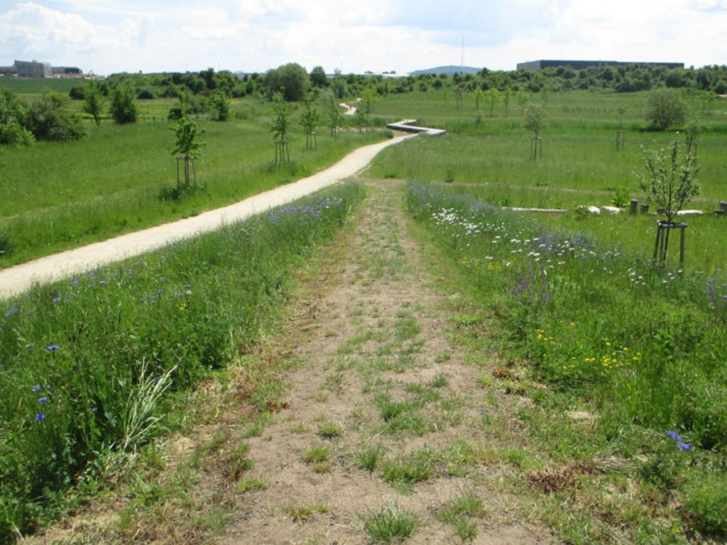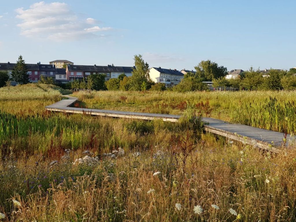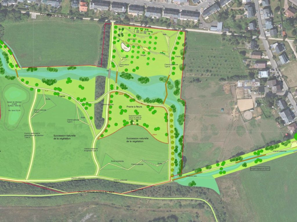 Le parc récréatif naturel « Krakelshaff » permettra de créer une zone tampon entre les quartiers sud de la localité et la zone d’activités économiques et qui valorisera ainsi d’avantage l’attractivité de la promenade du Soleil. L’actuel ruisseau sera renaturé et accompagné de méandres et de végétations indigènes. Différentes buttes conçues à partir des terres récupérées du projet permettront de créer des points de multiples points de vue sur le parc. Un réseau de chemin invitera à la balade entre prairie et vergers. La végétation se décline ainsi au fil du parc jouant sur les hauteurs et les formes entre pelouse libre et prairie. Au sud des espaces de successions naturelles permettent de valoriser la diversité et laisse la nature reprendre ses droits.