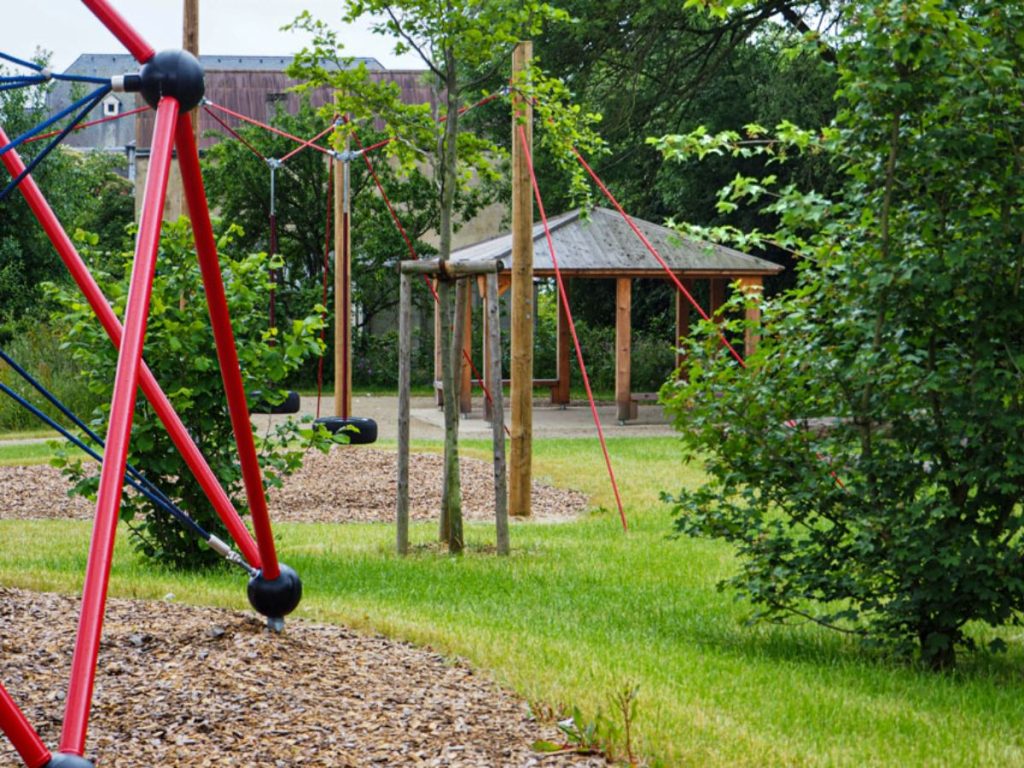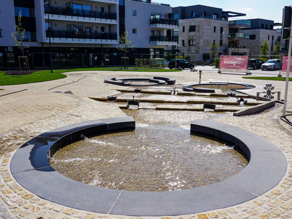 L’aménagement intègre également une plaine de jeux située non loin et à proximité d’une crèche. Le projet concilie un espace esthétique et ludique. Le contact à l’eau offre un réel divertissement pour les petits et les grands. Les faibles hauteurs d’eau assurent une sécurité continue sur l’aire de jeux.